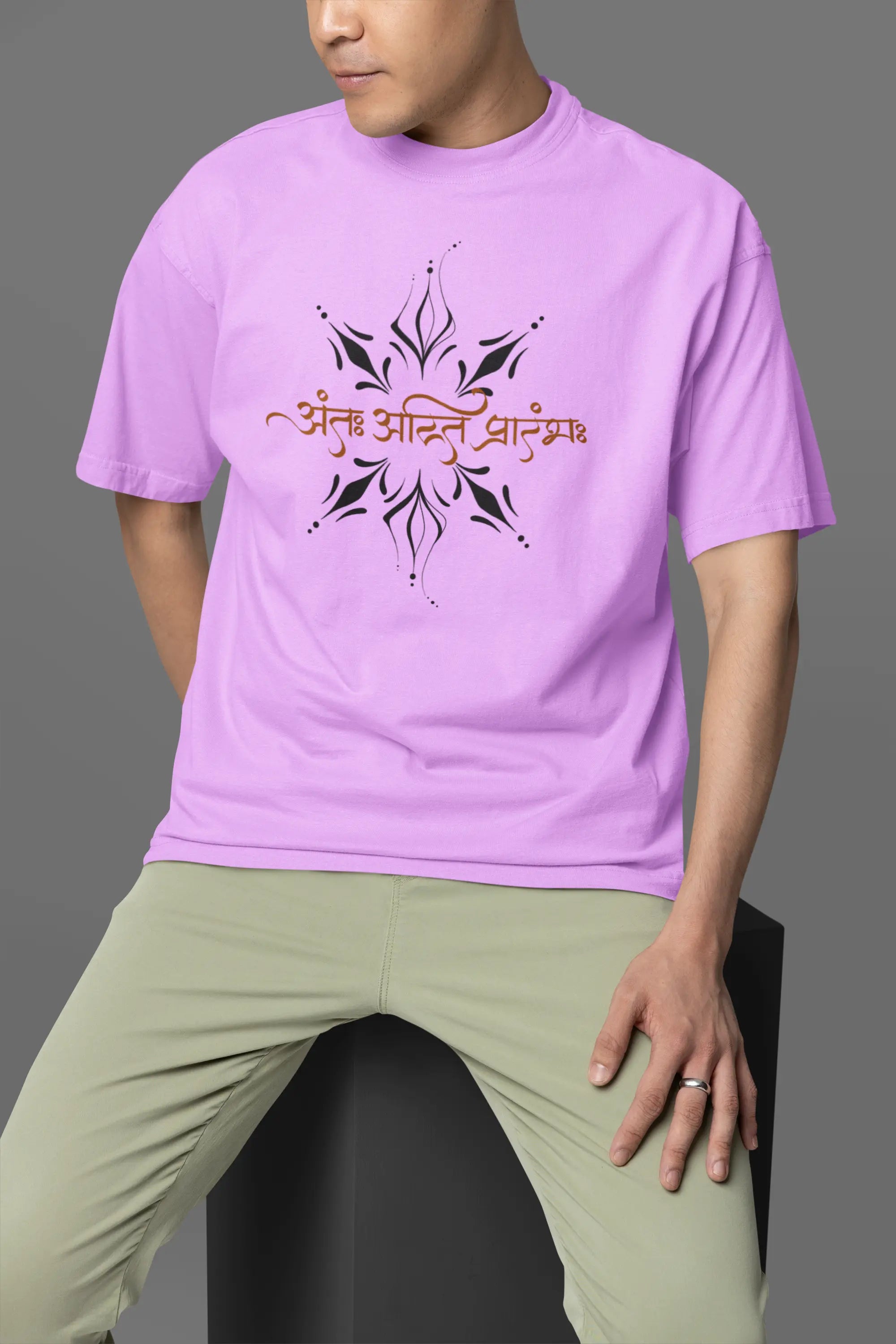 "अंतः अस्ति प्रारंभः" Sanskrit Oversized T-Shirt – Soft Cotton Spiritual Wear