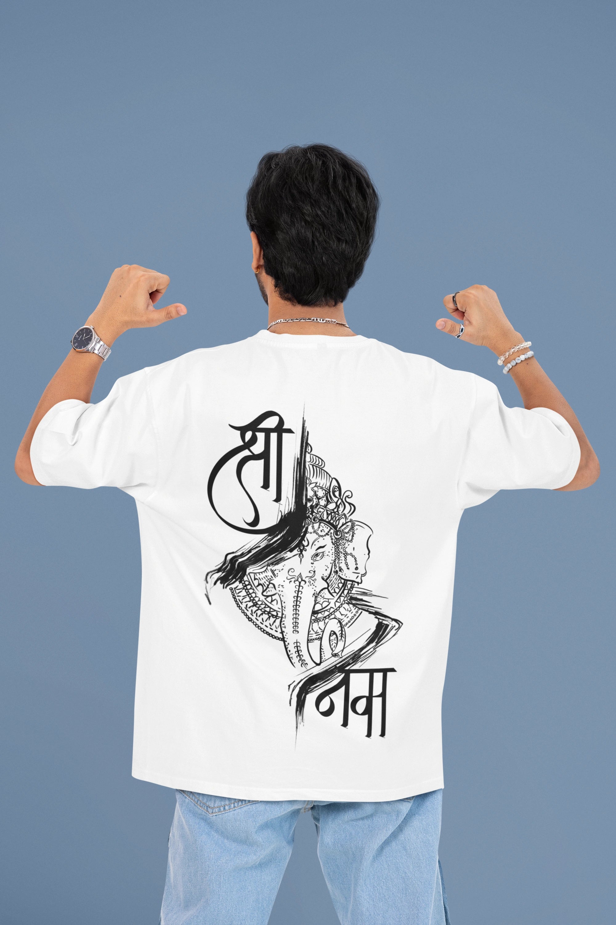 श्री गणेशाय नमः" Soft Cotton Spiritual Wear Oversized T-Shirt – White Edition