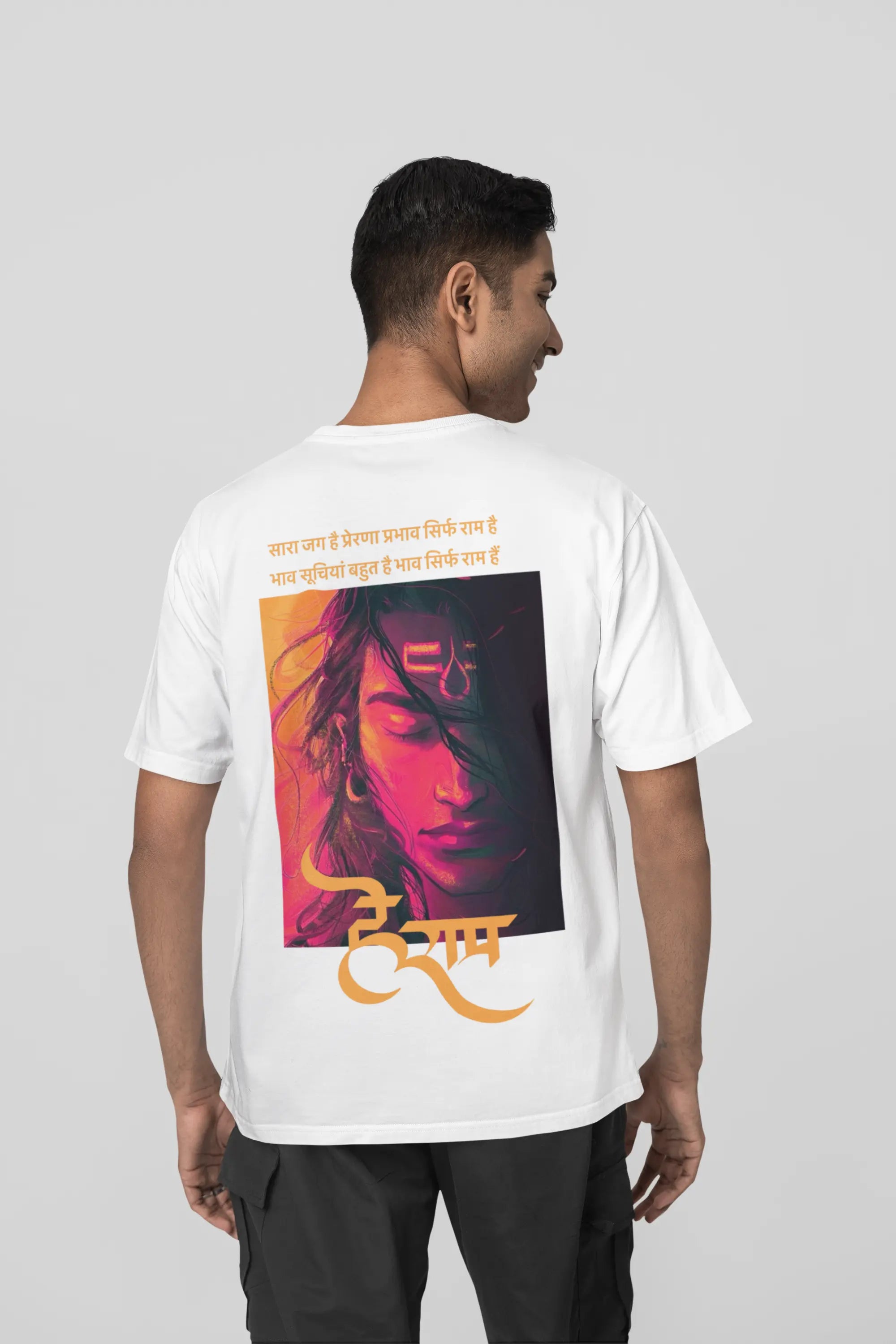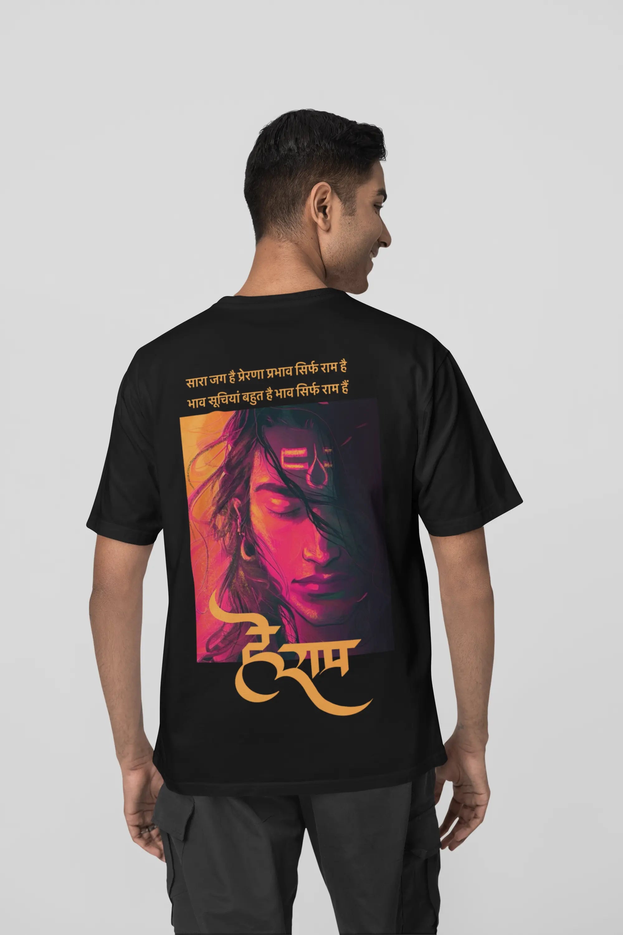 Oversized Drop-Shoulder Fit: The oversized drop-shoulder fit is inspired by Sanatani values of inclusivity and comfort, ensuring a flattering silhouette for all body types.