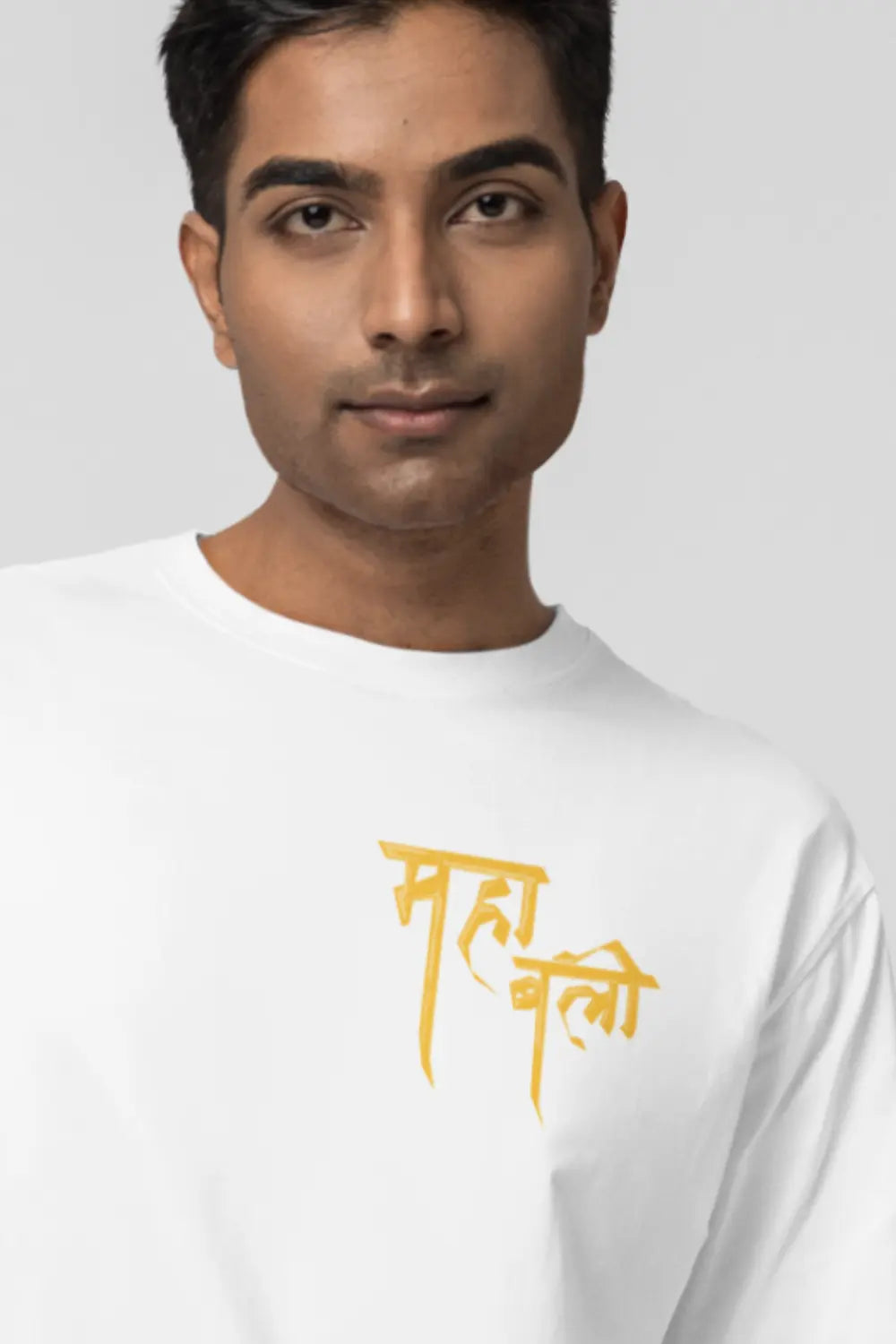 Oversized Drop-Shoulder Fit: The oversized drop-shoulder fit is inspired by Sanatani values of inclusivity and comfort, ensuring a flattering silhouette for all body types.