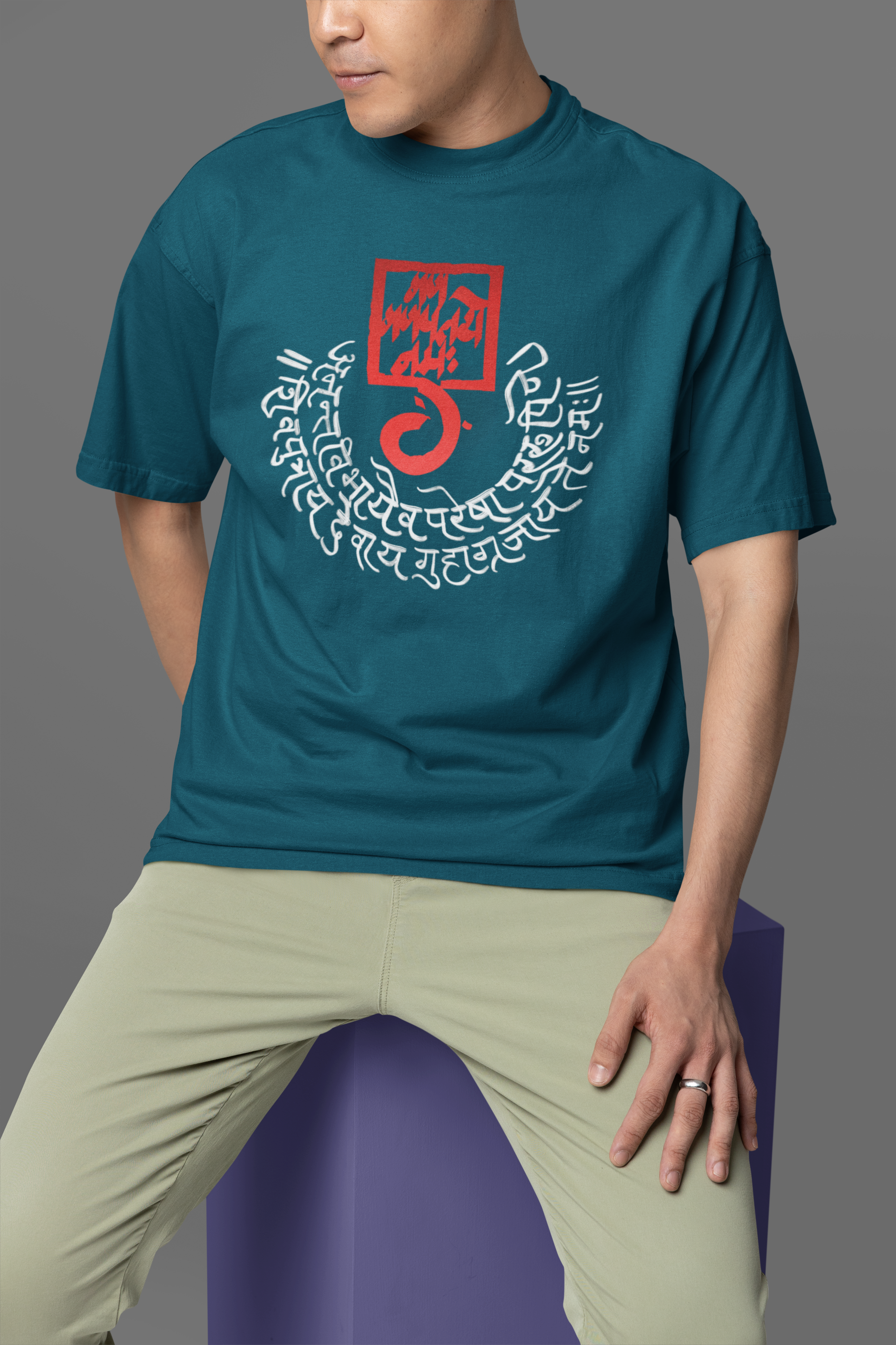 • Oversized Drop-Shoulder Fit: The oversized drop-shoulder fit is inspired by Sanatani values of inclusivity and comfort, ensuring a flattering silhouette for all body types.